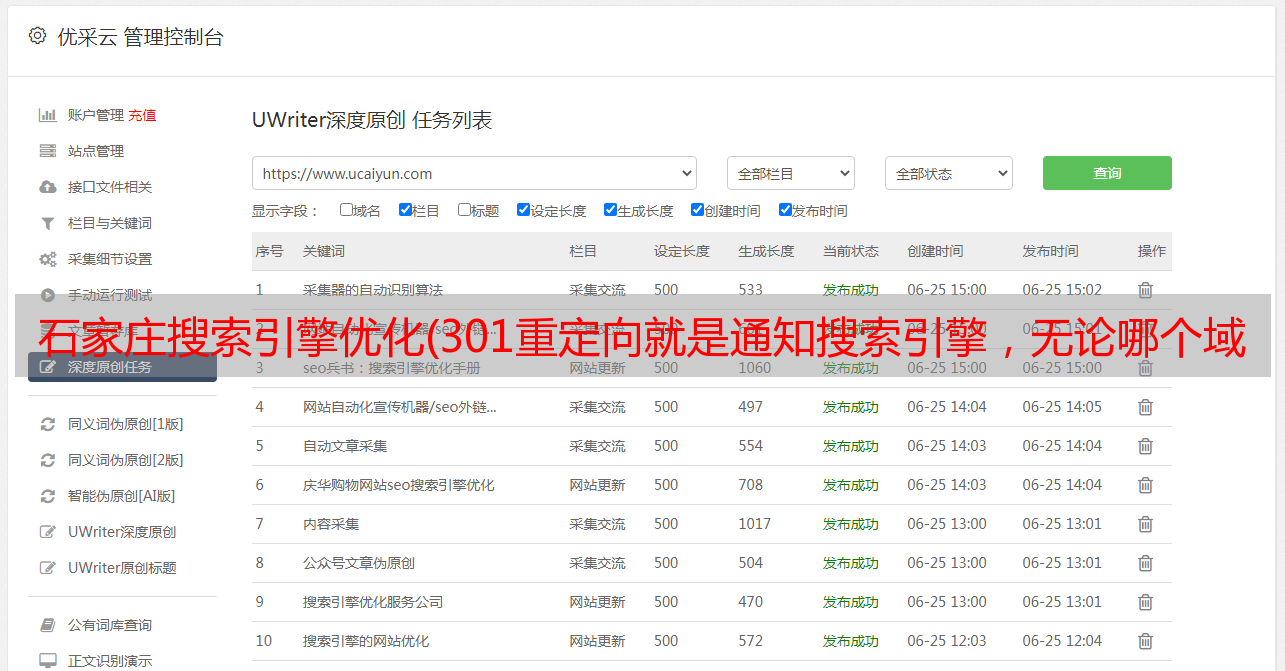 优采云 发布时间: 2022-02-16 12:14石家庄搜索引擎优化(301重定向就是通知搜索引擎,无论哪个域名或地址会永久转移)
