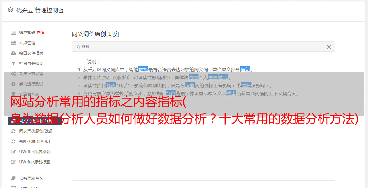 优采云 发布时间: 2022-02-16 13:22网站分析常用的指标之内容指标(