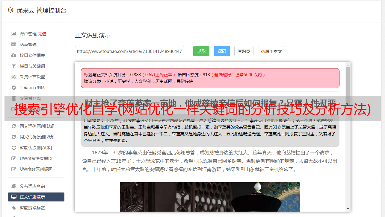 我们经常在博客上看到人们 文章 说 伪原创 对 伪原创 是多么不可取。但是世界文章是一个大副本,你复制的越多,你就越能记住。大家一开始都是伪原创,知道的越多,写的越多。当然,在分享一些SEO的详细优化规则时,也说伪原创也是一种技术。我们需要做的不是完全照搬,而是模仿我们自己的想法。