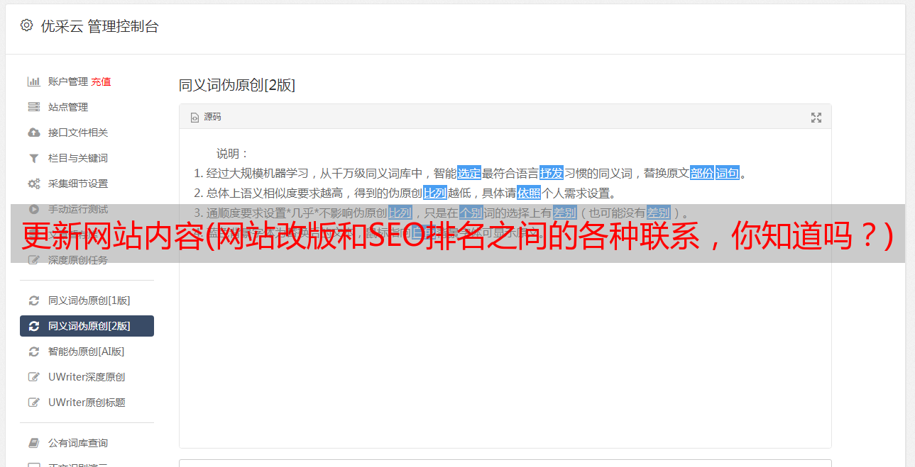 优采云 发布时间: 2022-02-16 17:31更新网站内容(网站改版和SEO排名之间的各种联系,你知道吗?)