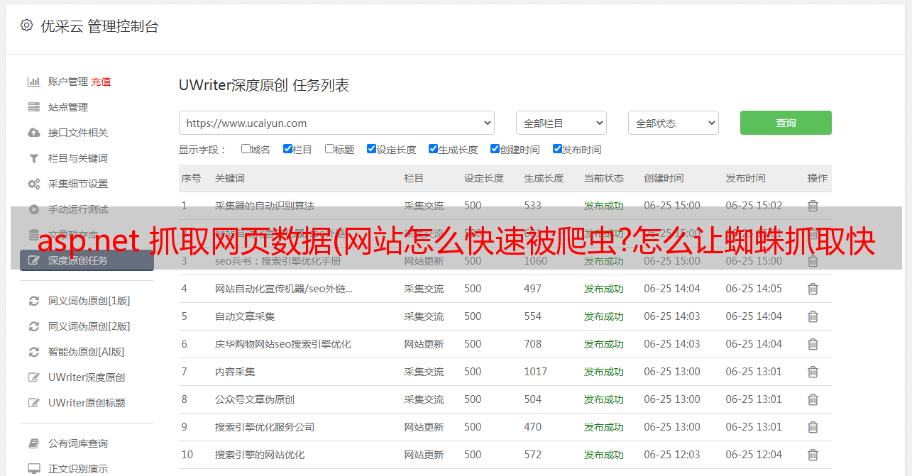 优采云 发布时间: 2022-02-16 17:35asp.net 抓取网页数据(网站怎么快速被爬虫?怎么让蜘蛛抓取快速和方法)