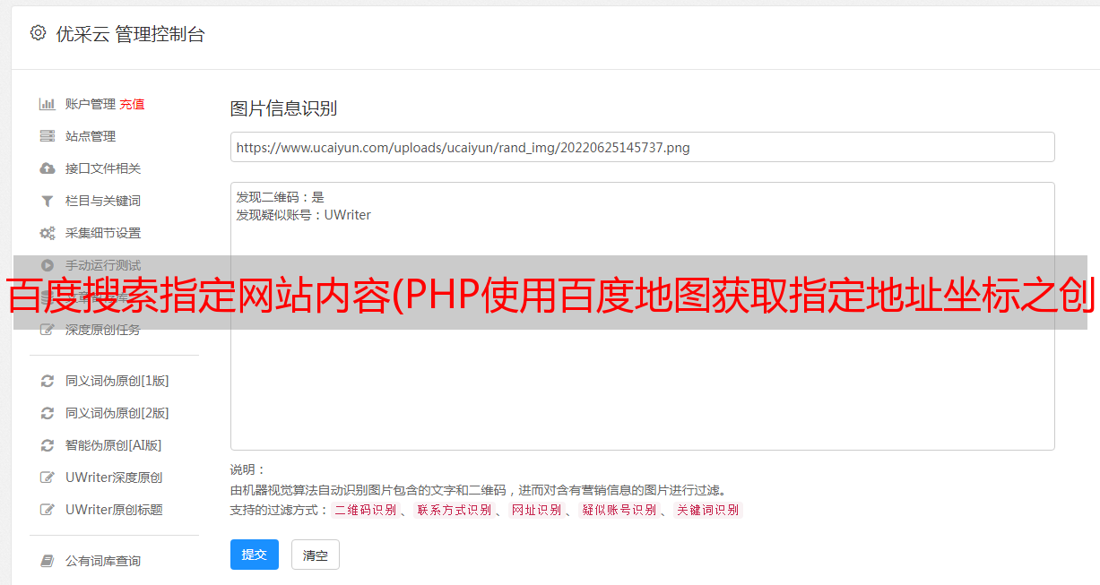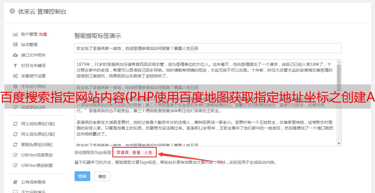 优采云 发布时间: 2022-02-16 18:16百度搜索指定网站内容(PHP使用百度地图获取指定地址坐标之创建AK(api))
