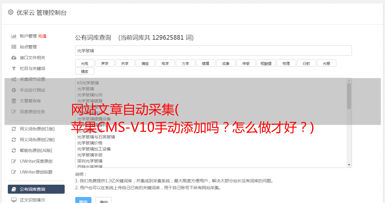 苹果cms采集实践与优化:苹果cms,这个节目大家一定不陌生,做影视的都知道。苹果的cms-V10目前比较全面,包括伪静态性能,可以说是优秀!而且后台配置简单,一键采集资源站内容,傻瓜式操作。而且还有一个更好的功能,就是URL提交、地图生成、熊爪号提交。既然是新的视频站,内容全是苹果cms采集,视频内容就不用做功课了,用更精准的词或热榜来做吧!