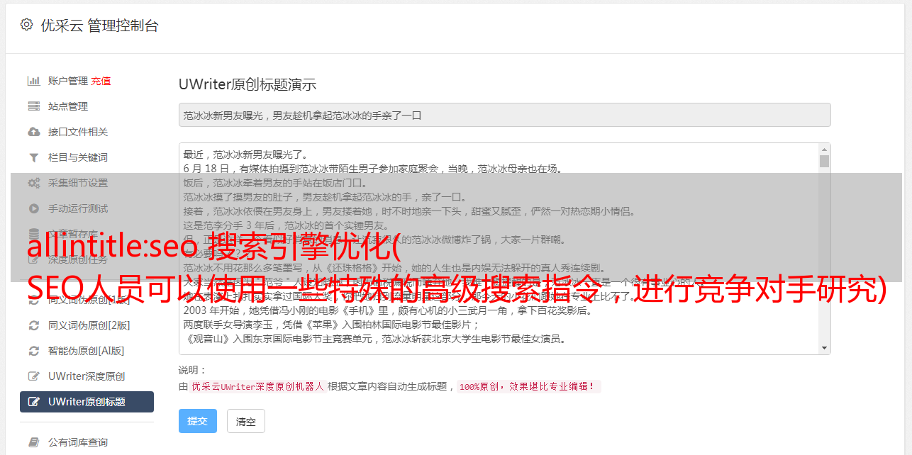 优采云 发布时间: 2022-02-16 23:19allintitle:seo 搜索引擎优化(