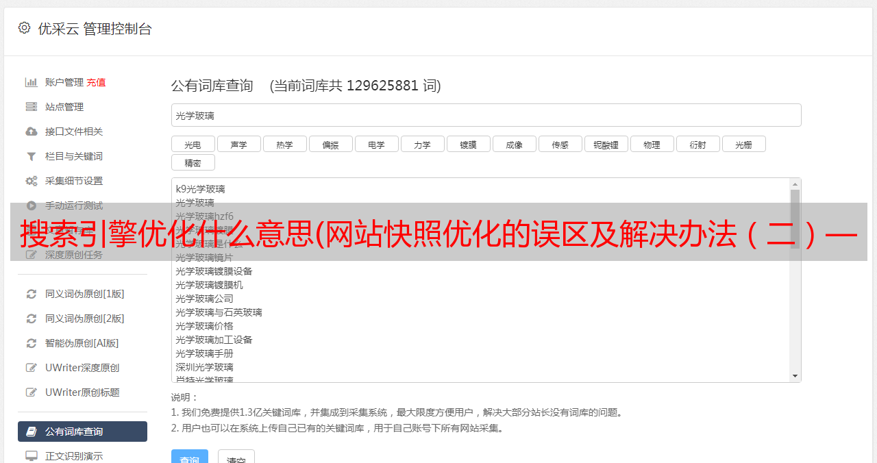 优采云 发布时间: 2022-02-17 00:21搜索引擎优化什么意思(网站快照优化的误区及解决办法(二)——几个)