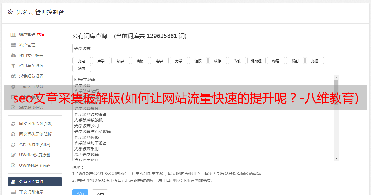 优采云 发布时间: 2022-02-17 01:17seo文章采集破解版(如何让网站流量快速的提升呢?-八维教育)