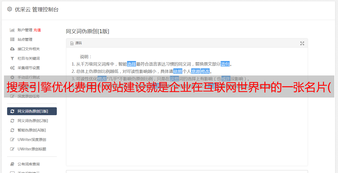 优采云 发布时间: 2022-02-17 07:23搜索引擎优化费用(网站建设就是企业在互联网世界中的一张名片(图))