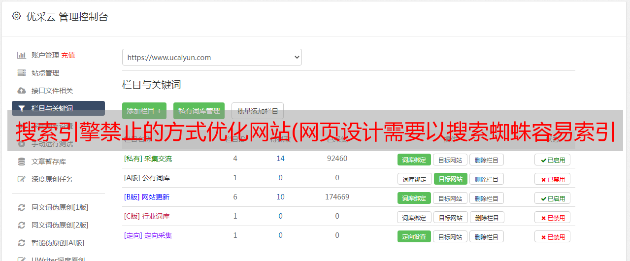 优采云 发布时间: 2022-02-17 10:37搜索引擎禁止的方式优化网站(网页设计需要以搜索蜘蛛容易索引方式制作的网站架构)