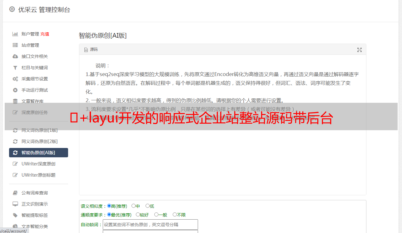 优采云 发布时间: 2021-05-03 19:10+layui开发的响应式企业站整站源码带后台