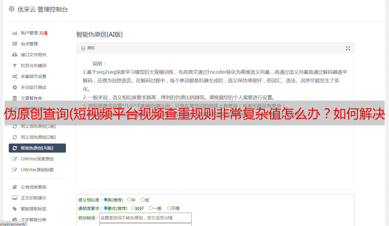 伪原创查询(短视频平台视频查重规则非常复杂值怎么办?如何解决 )