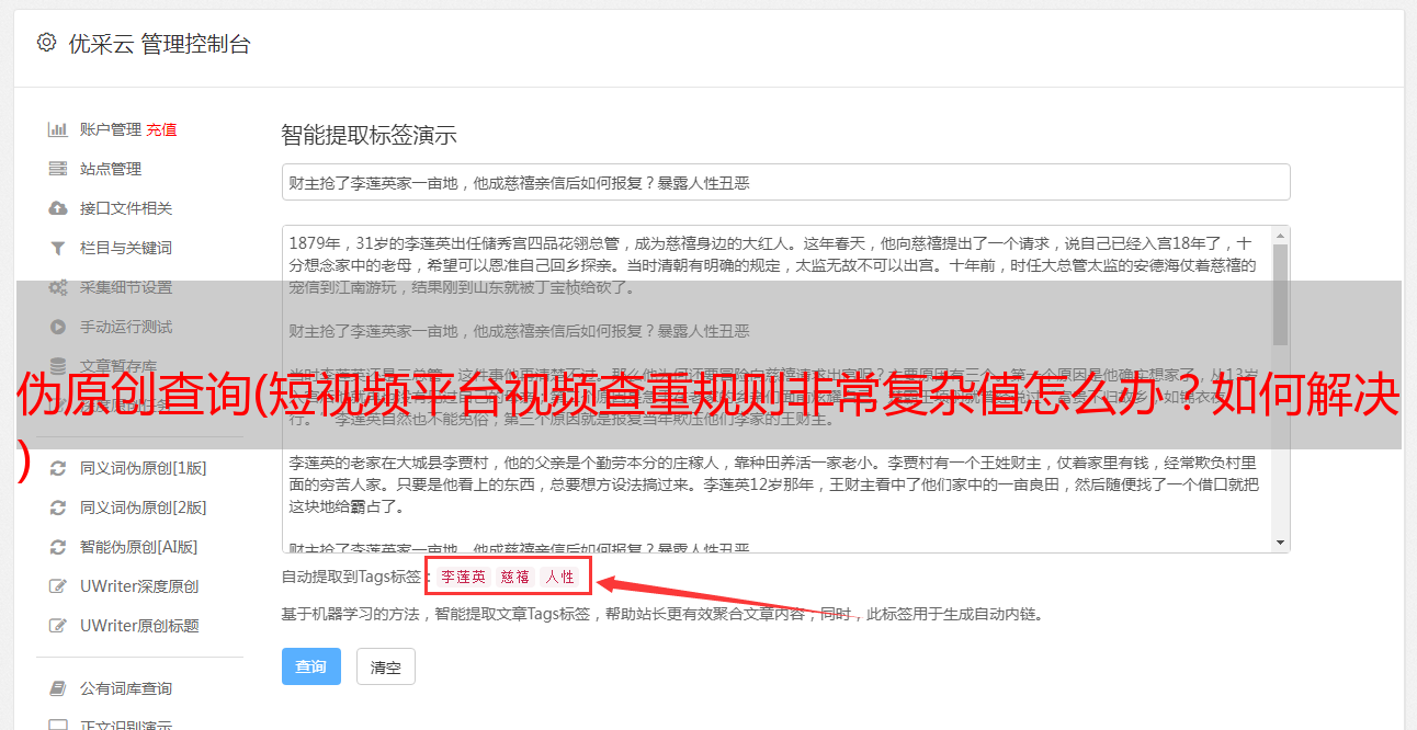优采云 发布时间: 2022-02-17 12:13伪原创查询(短视频平台视频查重规则非常复杂值怎么办?如何解决