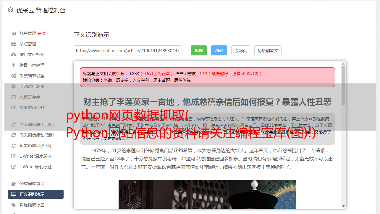 python网页数据抓取( Python网站信息的资料请关注编程宝库(图)!)