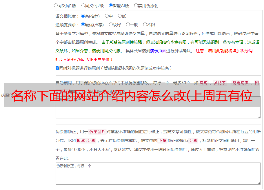 名称下面的网站介绍内容怎么改(上周五有位网站老客户找武汉卡卡西科技做网站SEO优化关键词排名)