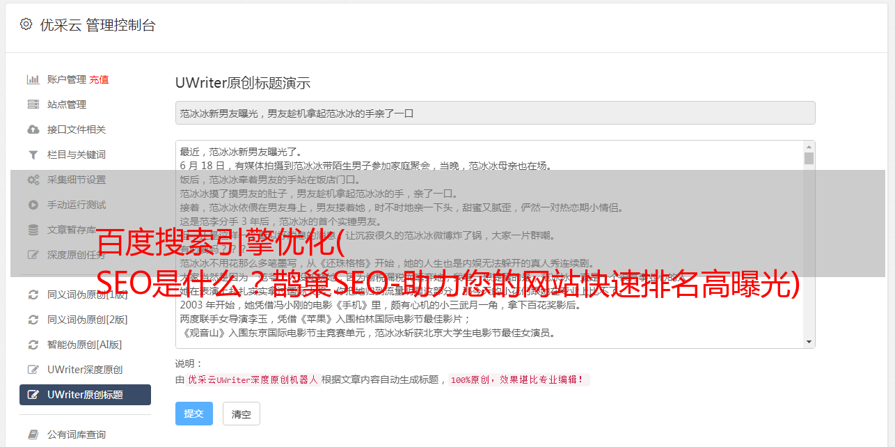 优采云 发布时间: 2022-02-17 17:15百度搜索引擎优化(