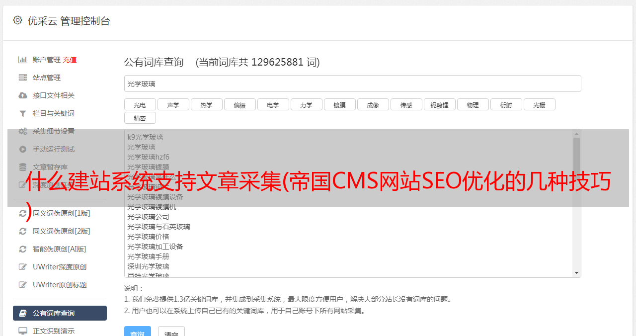 什么建站系统支持文章采集(帝国CMS网站SEO优化的几种技巧 )
