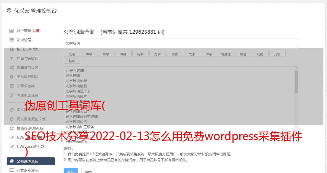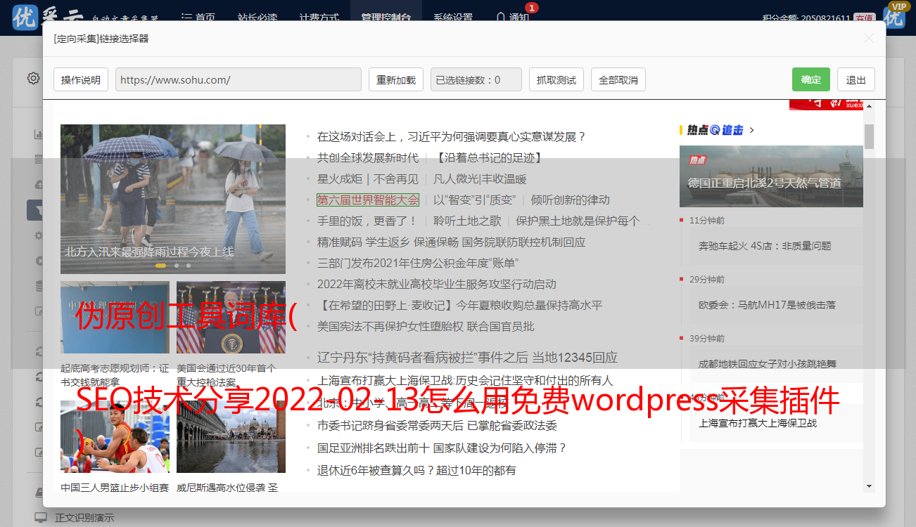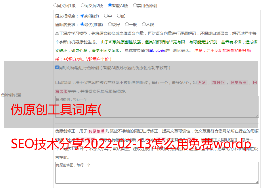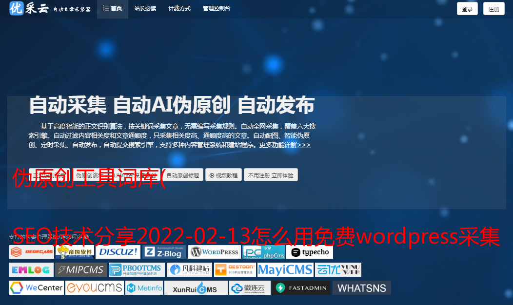 伪原创工具词库( SEO技术分享2022-02-13怎么用免费wordpress采集插件 )