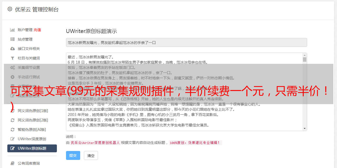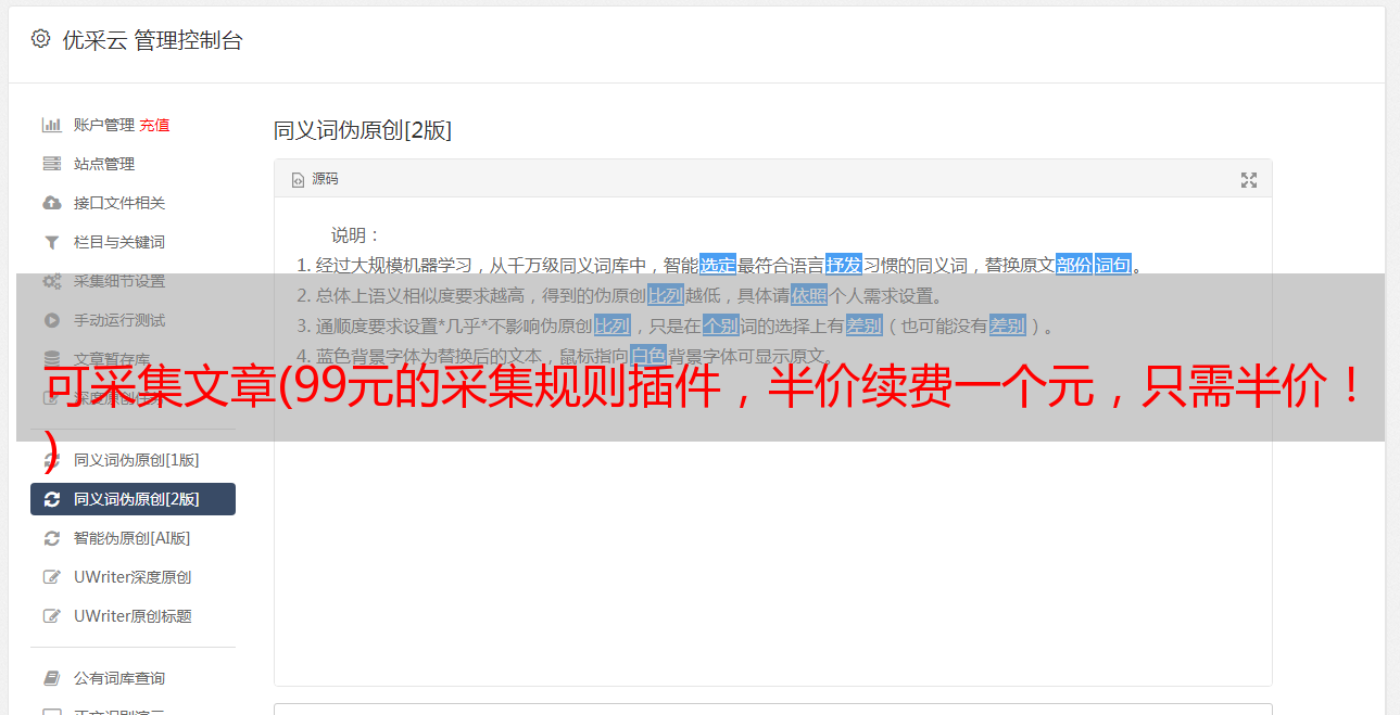 可采集文章(99元的采集规则插件,半价续费一个元,只需半价! )