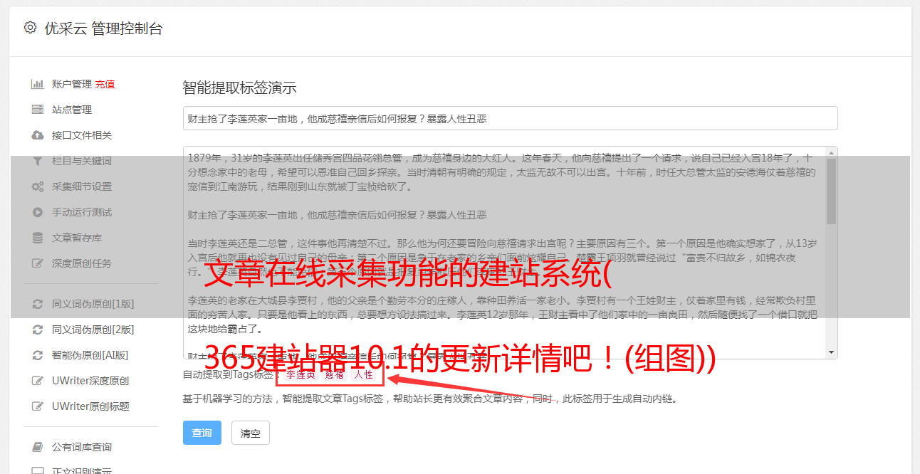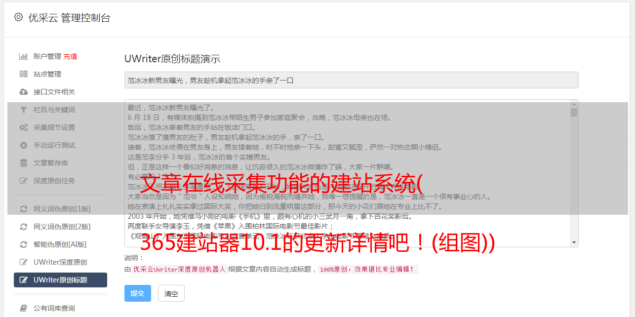 文章在线采集功能的建站系统( 365建站器10.1的更新详情吧!(组图))