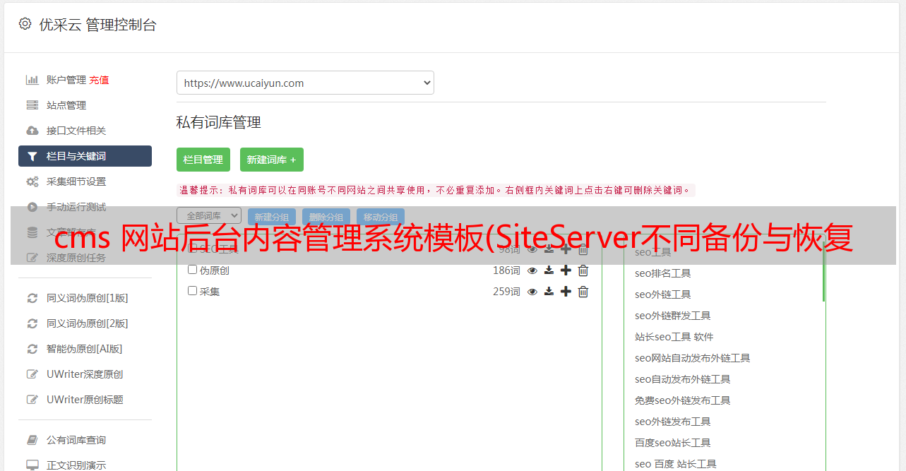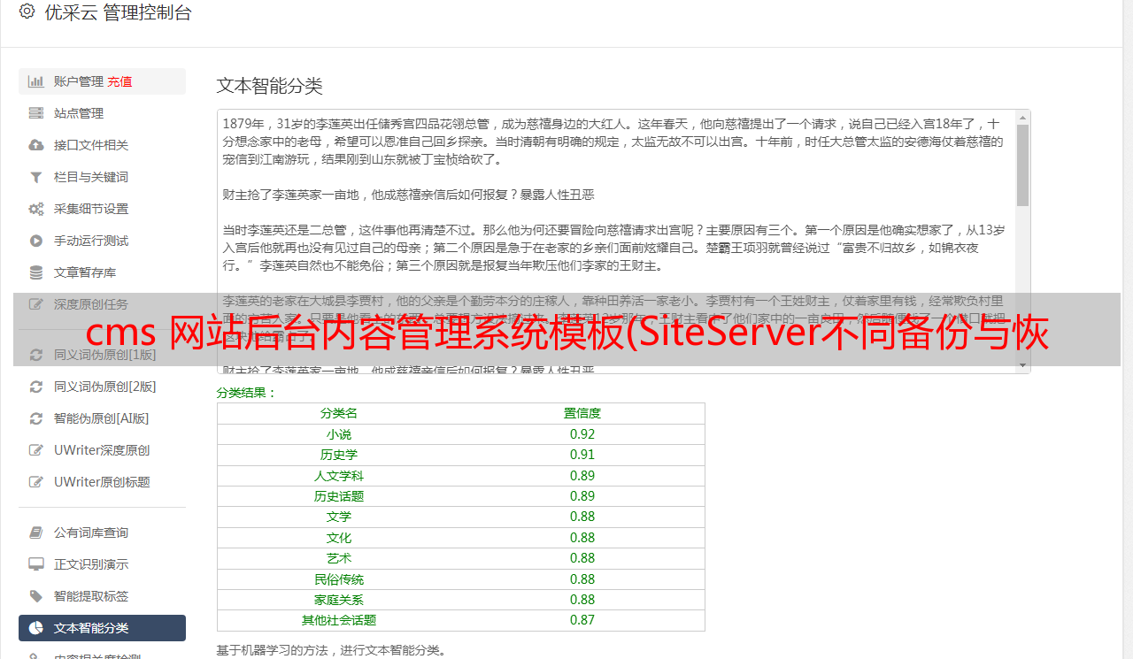 优采云 发布时间: 2022-02-18 22:10cms 网站后台内容管理系统模板(SiteServer不同备份与恢复功能的站点模板功能进行站点恢复)