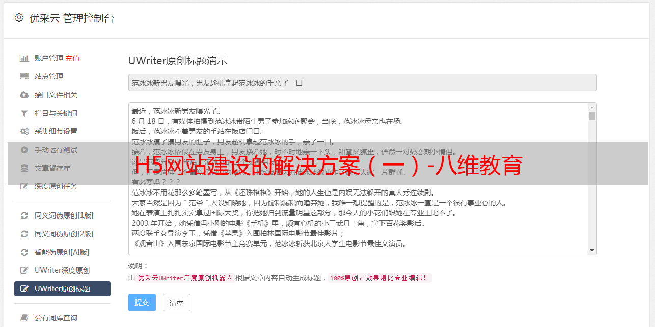 优采云 发布时间: 2021-05-04 00:16H5网站建设的解决方案(一)-八维教育