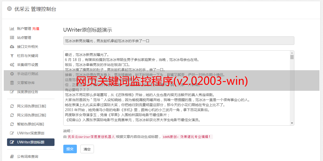 优采云 发布时间: 2021-05-04 01:28网页关键词监控程序(v2.02003-win)