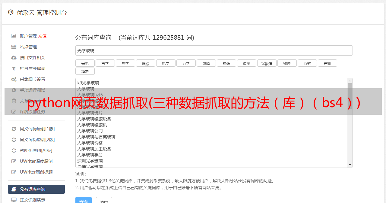 优采云 发布时间: 2022-02-19 15:20python网页数据抓取(三种数据抓取的方法(库)(bs4))