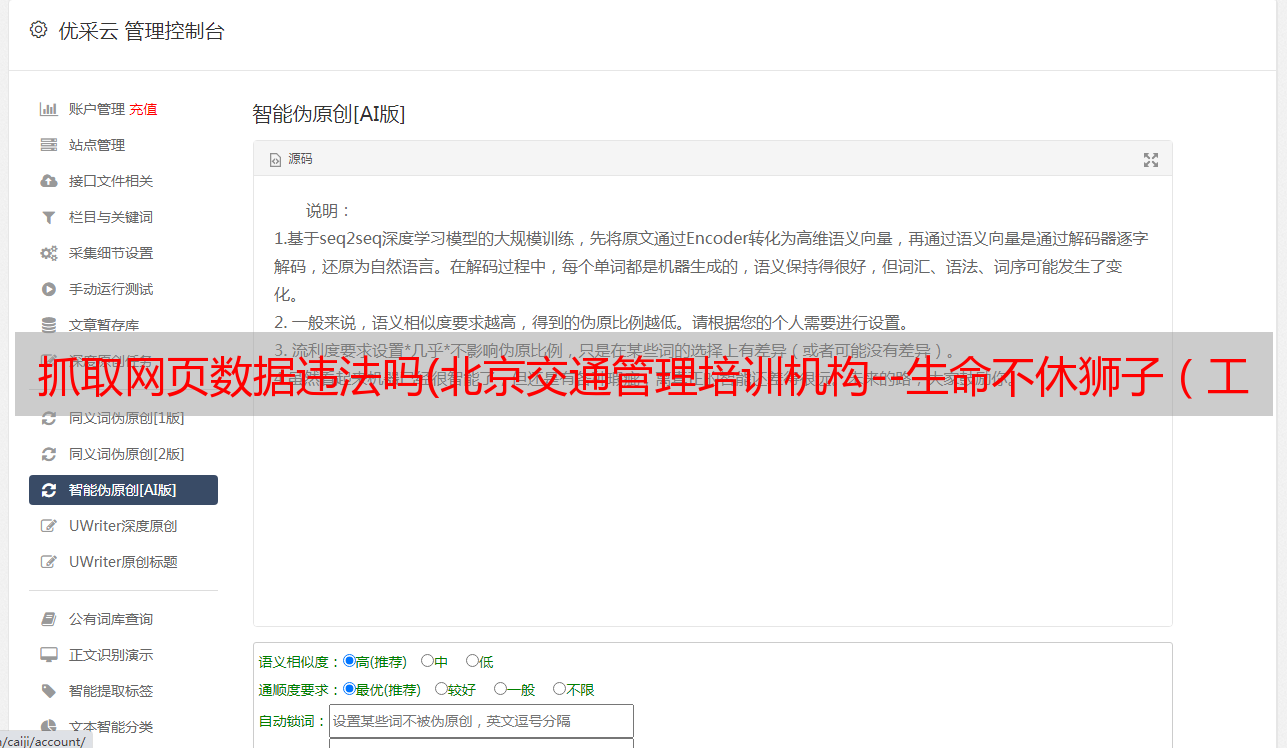优采云 发布时间: 2022-02-20 01:16抓取网页数据违法吗(北京交通管理培训机构--生命不休狮子(工程师))