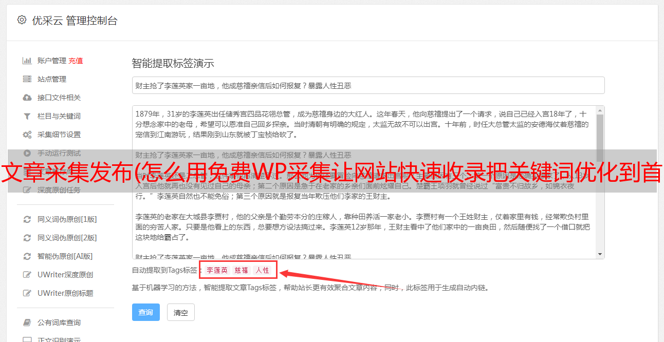 文章采集发布(怎么用免费WP采集让网站快速收录把关键词优化到首页 )