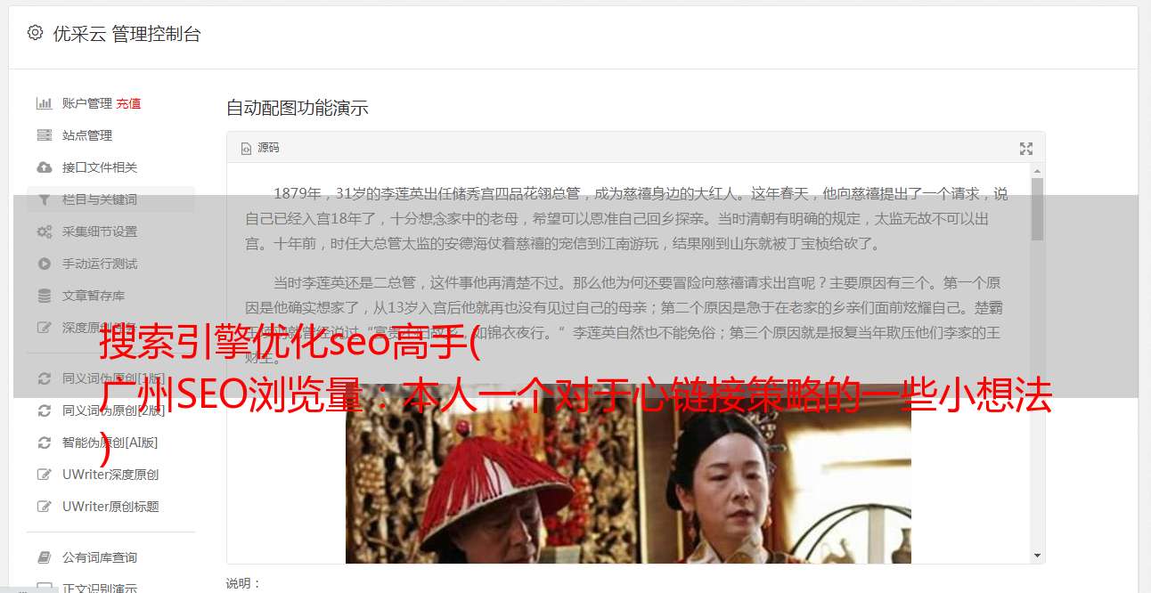 比如百度出品的内容产品是100G云网盘存储,注册后可以共享一次。爱站net的内容策略是基于一些现有用户。只需与身边的站长朋友分享几次,即可使用更*敏*感*词*。该内容策略是基于活动共享的内容策略。还有一些其他的内容策略。SEO认为它就像一个基于故事的序列化策略。我的灵感来自 BSG 论坛,一个站长介绍了他的*敏*感*词*,每隔一段时间就会更新一次。粘度非常高。关注视频视频行业的SEO内容优化方法很久了,才看。当然,这里序列化的前提是每次都有信息。文章也没有用。以故事为主的连载内容策略也是大家最流行的传播方式。猫扑、天涯、豆瓣都会分享很多好故事。