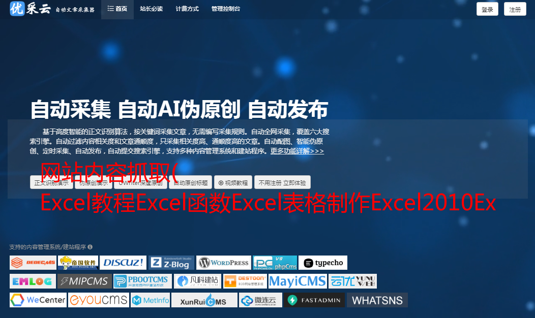 网站内容抓取( Excel教程Excel函数Excel表格制作Excel2010Excel实用技巧Excel视频教程 )
