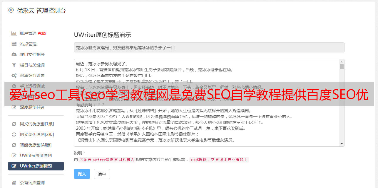 优采云 发布时间: 2022-02-20 23:03爱站seo工具(seo学习教程网是免费SEO自学教程提供百度SEO优化)
