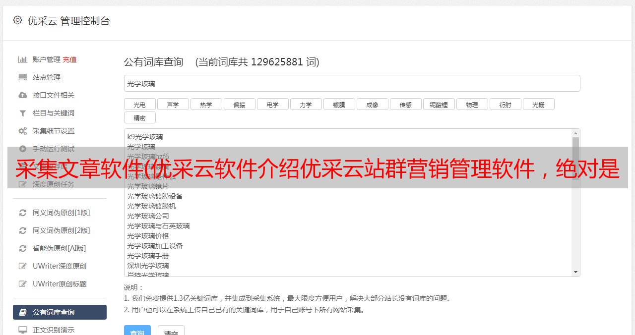 采集文章软件(优采云软件介绍优采云站群营销管理软件,绝对是适合你)
