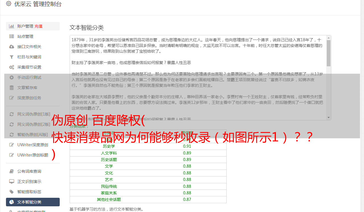 伪原创 百度降权( 快速消费品网为何能够秒收录(如图所示1)?? )