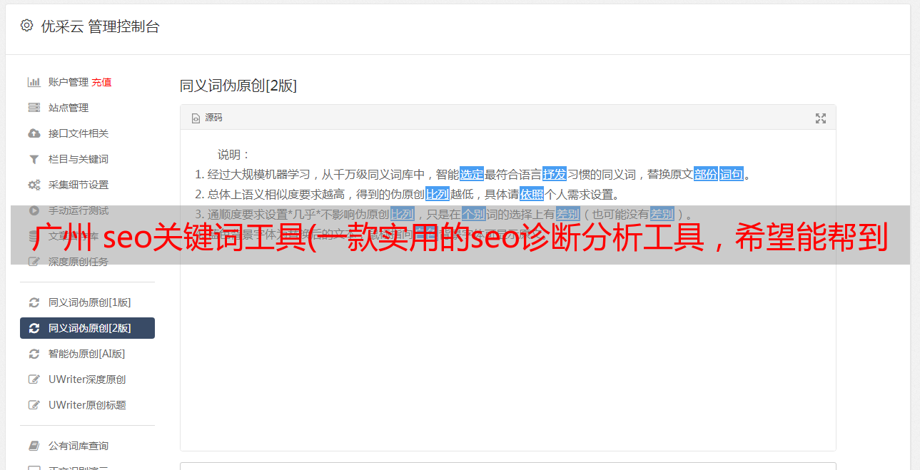 优采云 发布时间: 2022-02-21 02:20广州 seo关键词工具(一款实用的seo诊断分析工具,希望能帮到大家!)