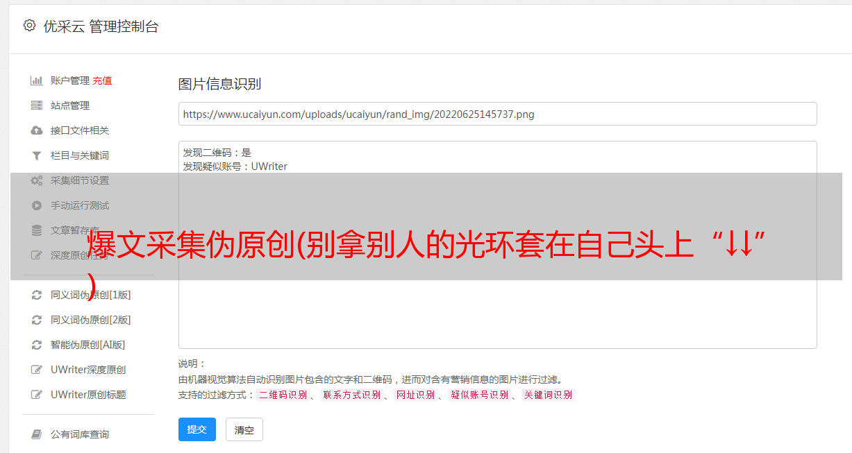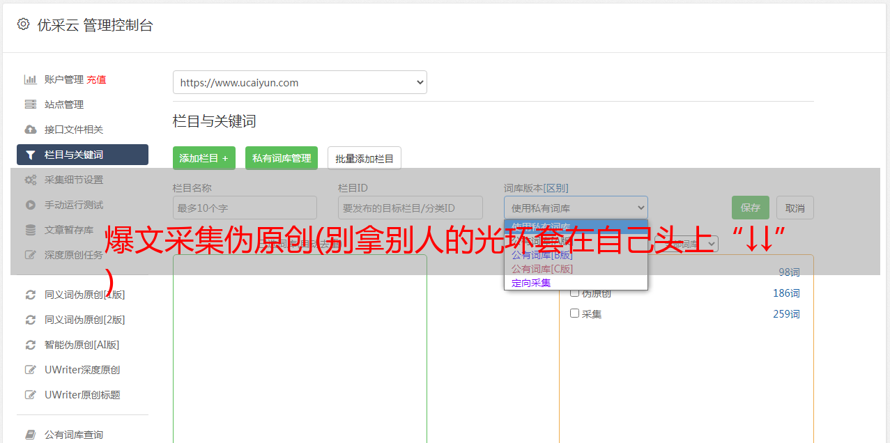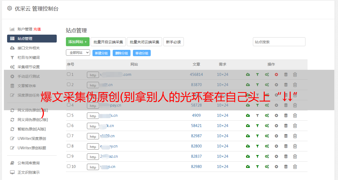 2.批处理伪原创,伪原创支持优采云指定文件夹下指定文件类型的数据库批处理!