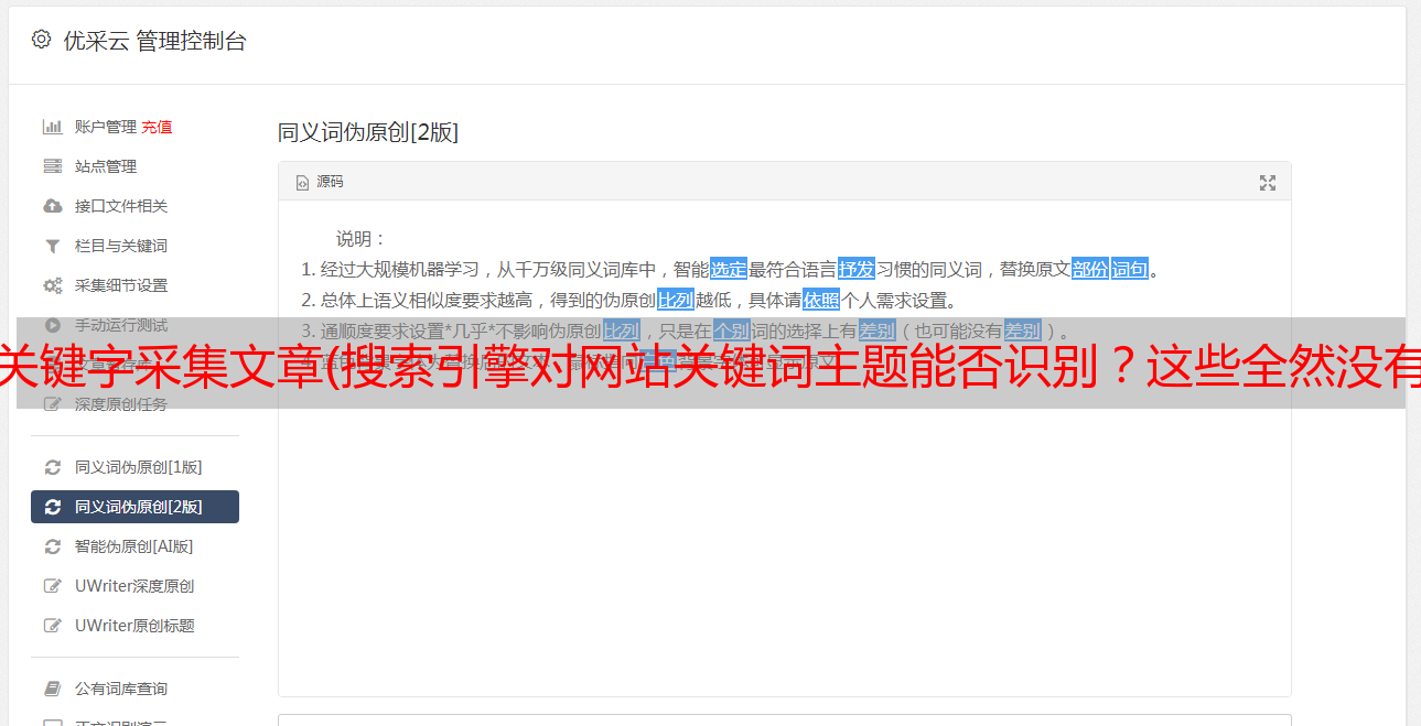 4、伪原创保留字(当文章原创未被伪原创使用时设置核心字)