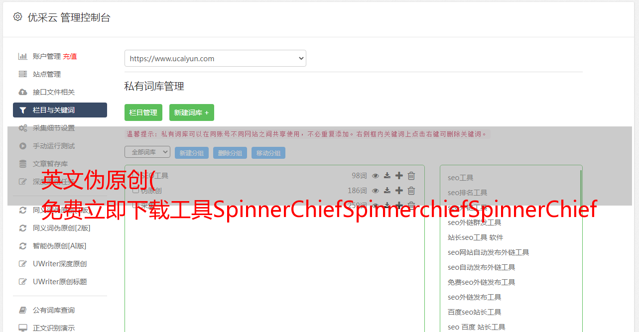 spinnerchief 伪原创工具功能强大,最重要的是免费