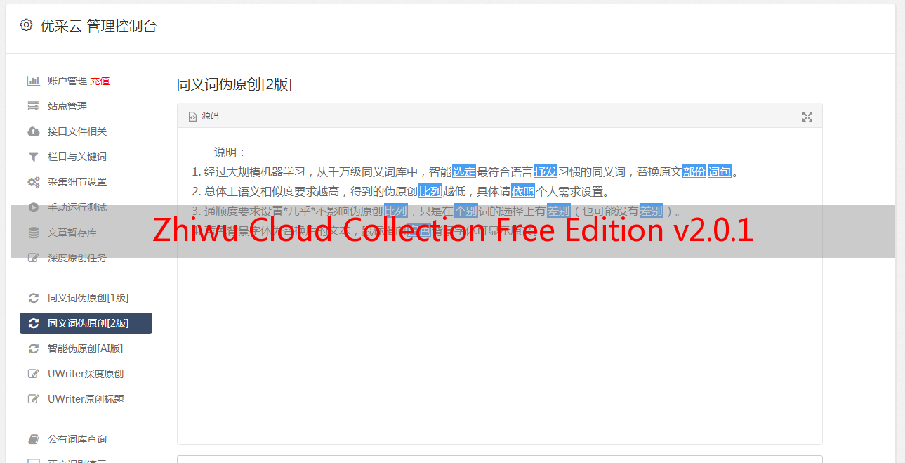 04. 所采集的内容可以转换为简体和繁体字符,伪原创和其他辅助处理.