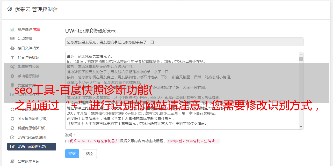 优采云 发布时间: 2022-02-21 17:16seo工具-百度快照诊断功能(