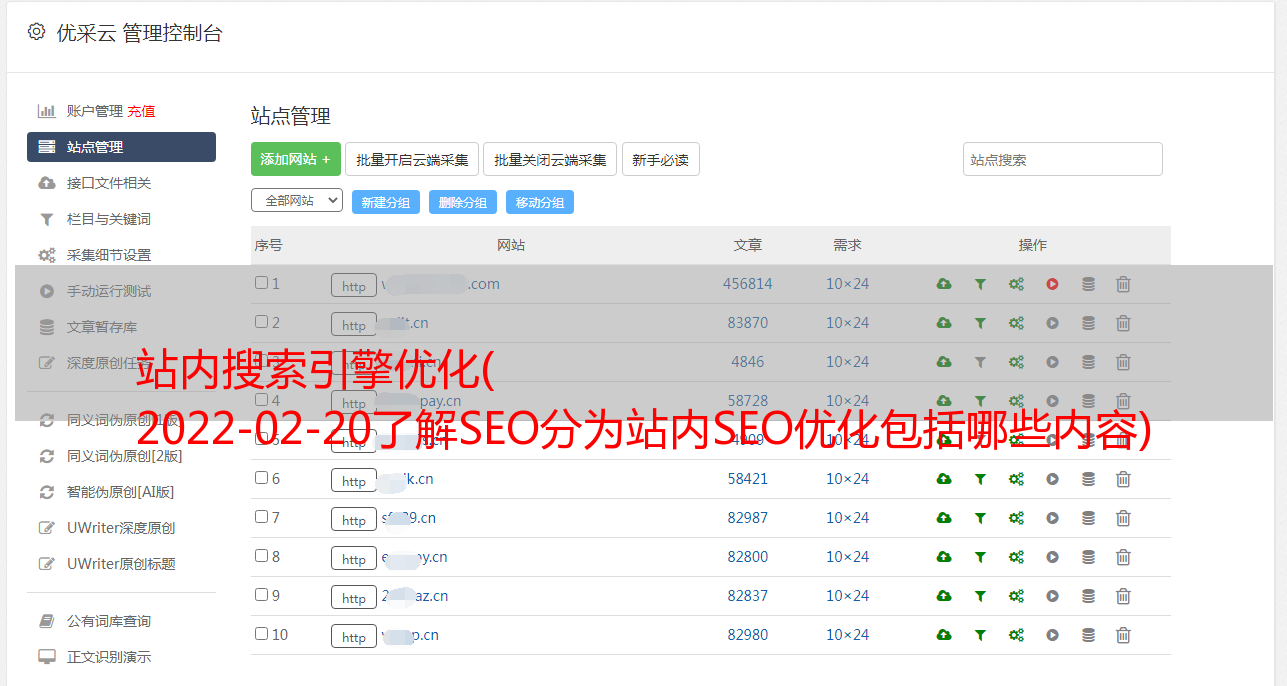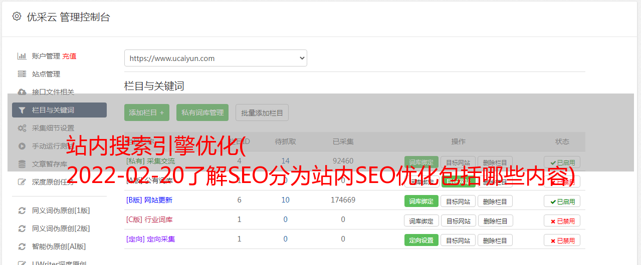 优采云 发布时间: 2022-02-21 17:20站内搜索引擎优化(