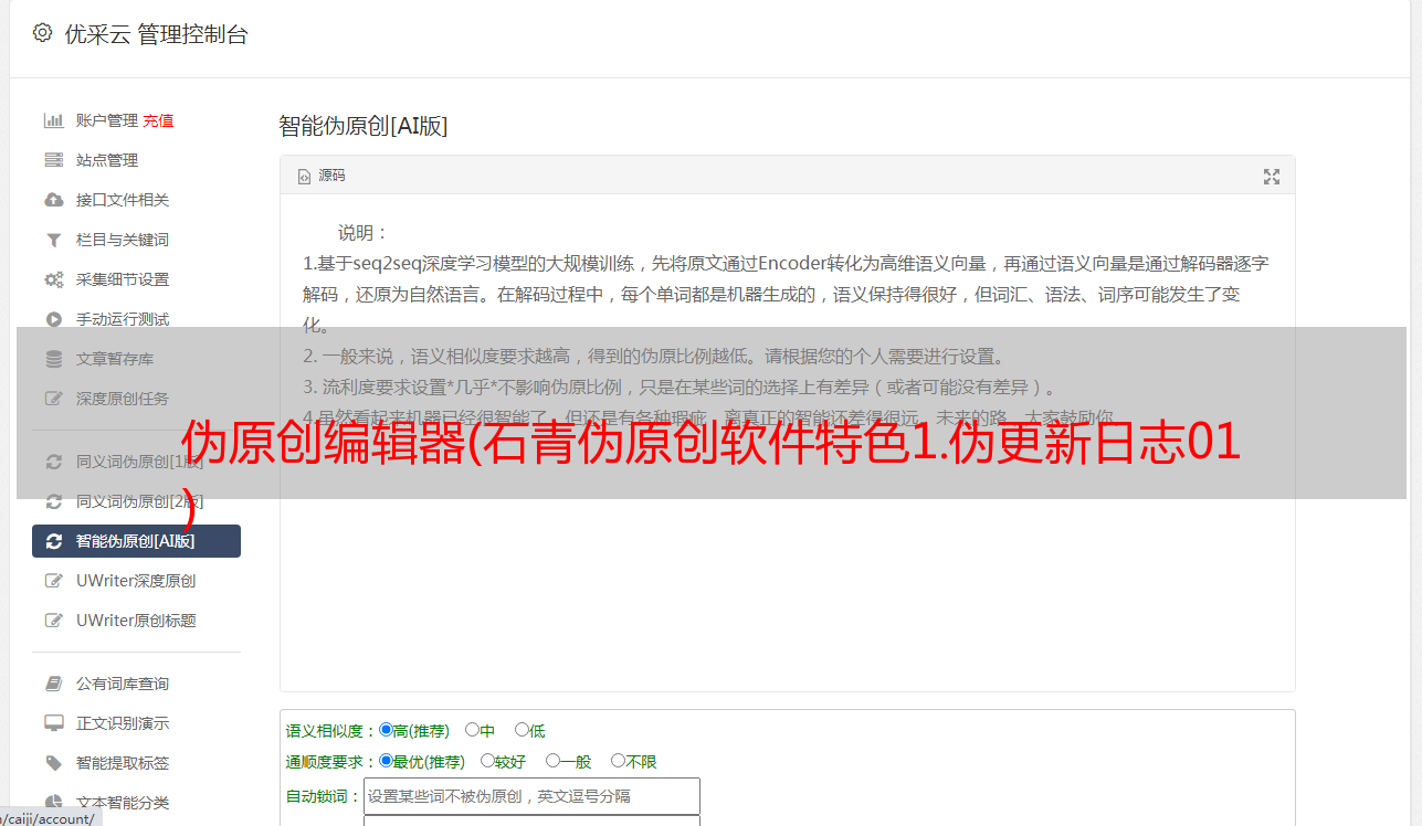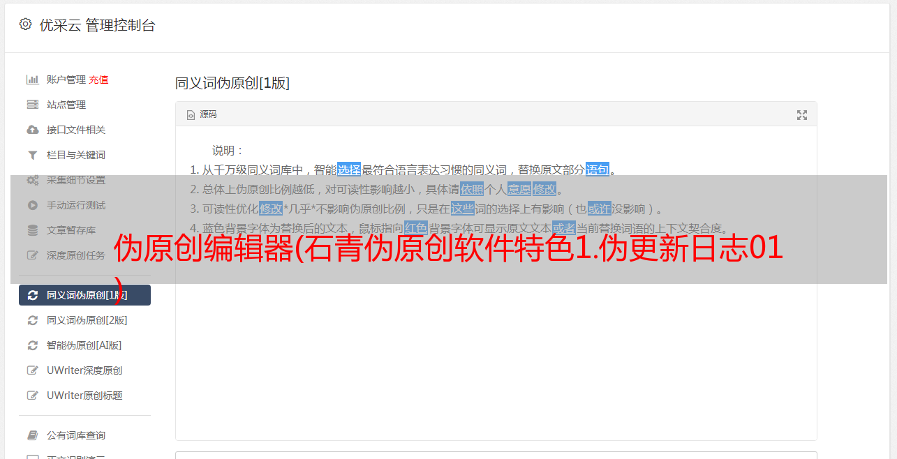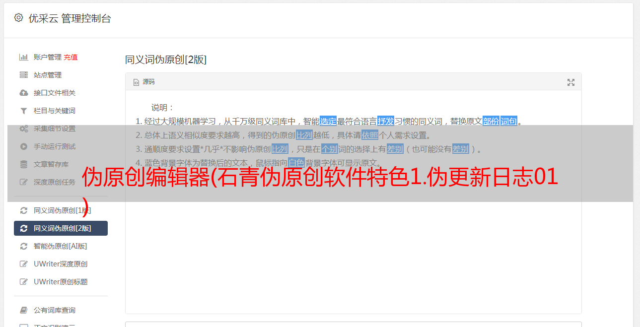 伪原创编辑器(石青伪原创软件特色1.伪更新日志01 )