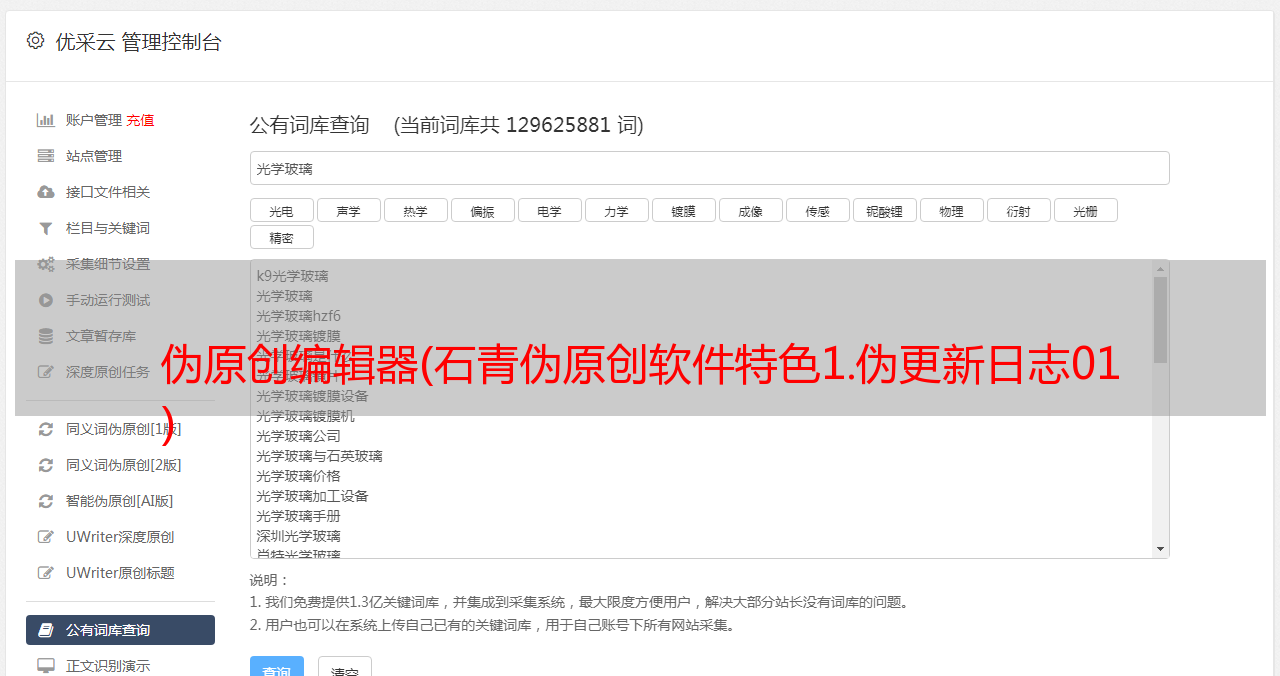 优采云 发布时间: 2022-02-22 08:15伪原创编辑器(石青伪原创软件特色1.伪更新日志01