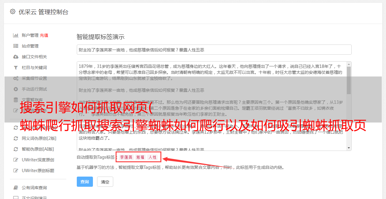 (1)爬取和爬取:搜索引擎蜘蛛通过以下链接发现和访问页面,读取页面 HTML 代码并将其存储在数据库中。