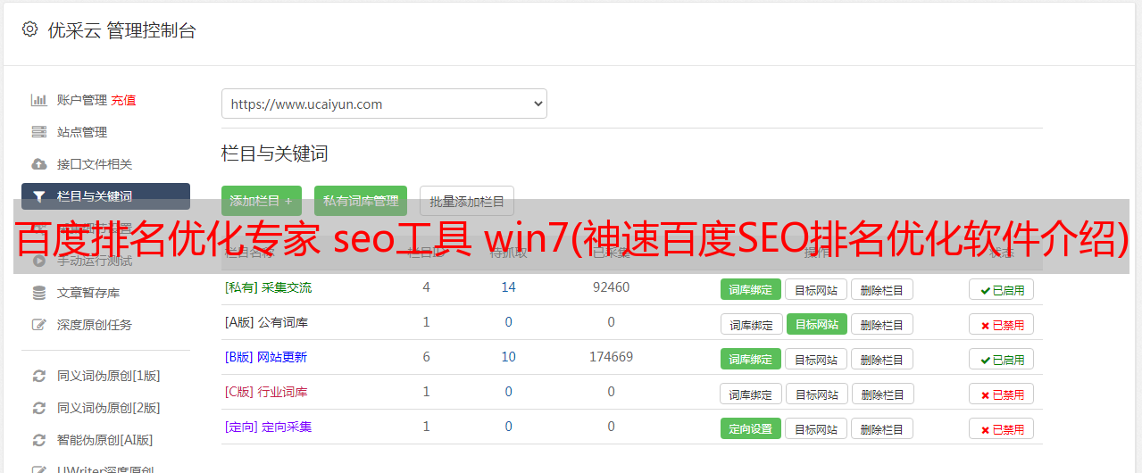 优采云 发布时间: 2022-02-22 12:10百度排名优化专家 seo工具 win7(神速百度SEO排名优化软件介绍)