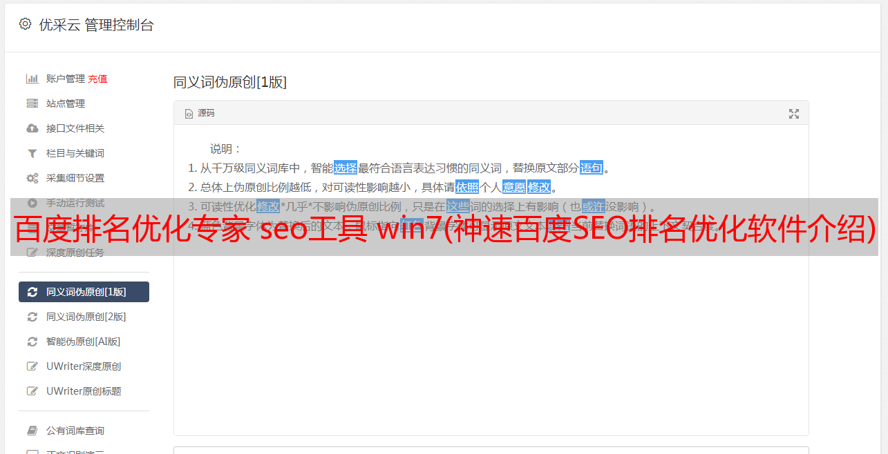 百度排名优化专家 seo工具 win7(神速百度SEO排名优化软件介绍)
