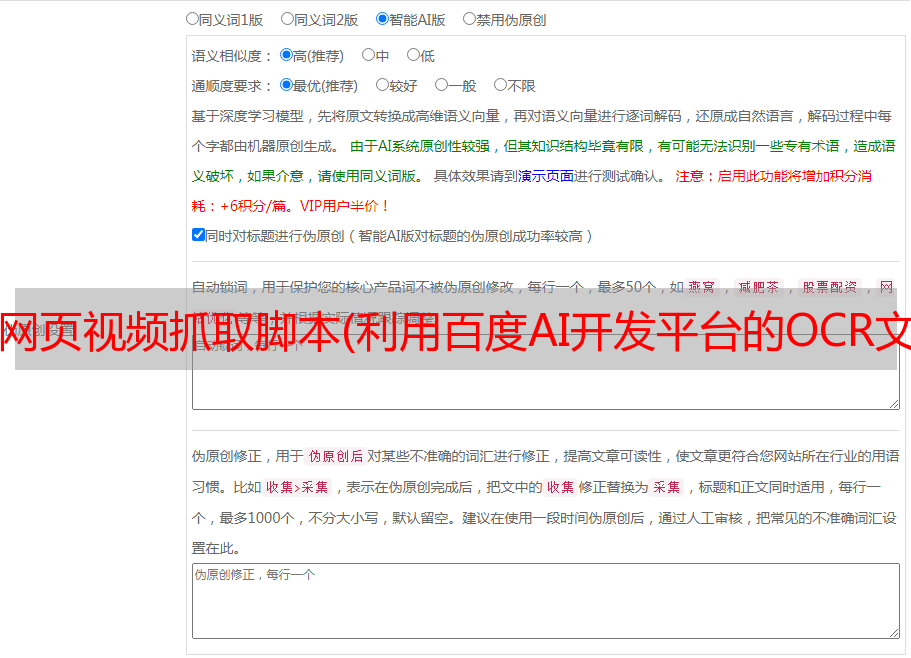 优采云 发布时间: 2022-02-22 13:22网页视频抓取脚本(利用百度AI开发平台的OCR文字识别API也可以识别
