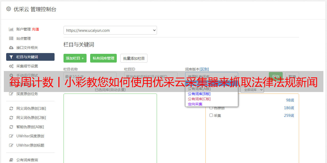 每周计数丨小彩教您如何使用优采云采集器来抓取法律法规新闻数据(发送规则+数据)