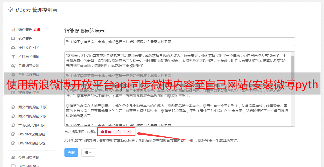 优采云 发布时间: 2022-02-22 18:04使用新浪微博开放平台api同步微博内容至自己网站(安装微博python的安装方式及解决方案
