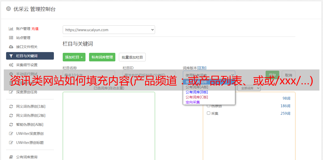优采云 发布时间: 2022-02-22 21:18资讯类网站如何填充内容(产品频道:或产品列表、或或/xxx/…)