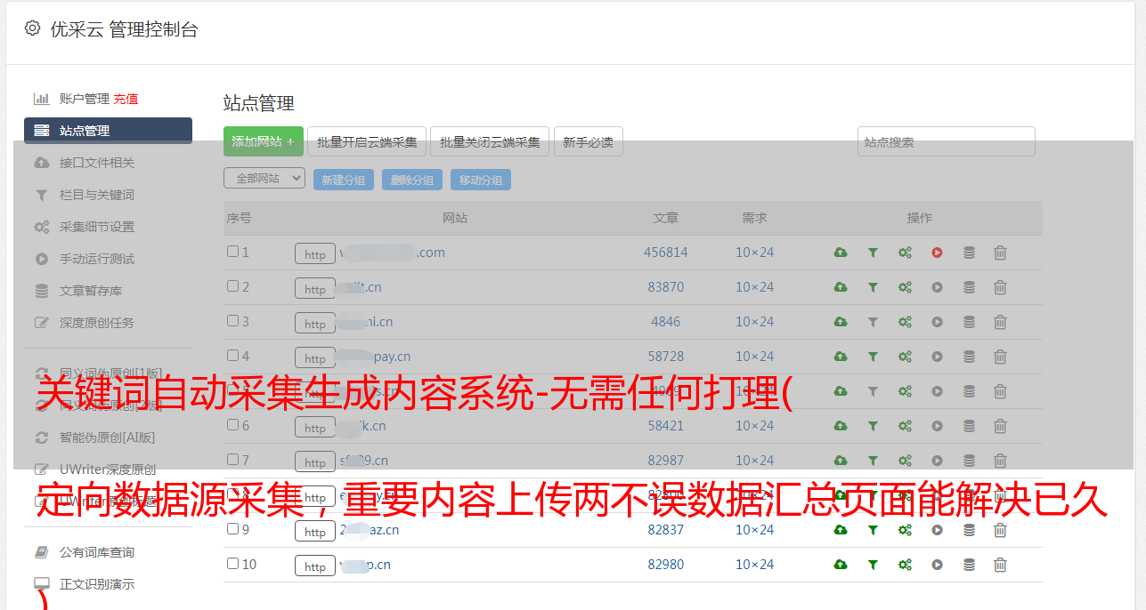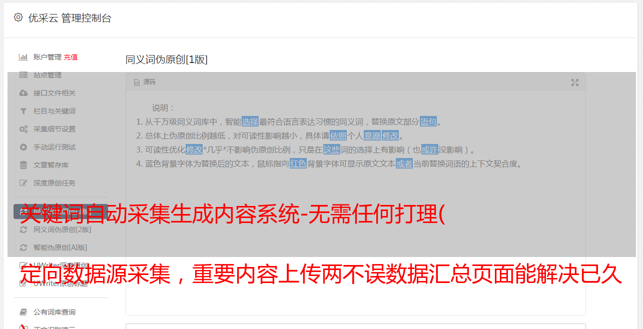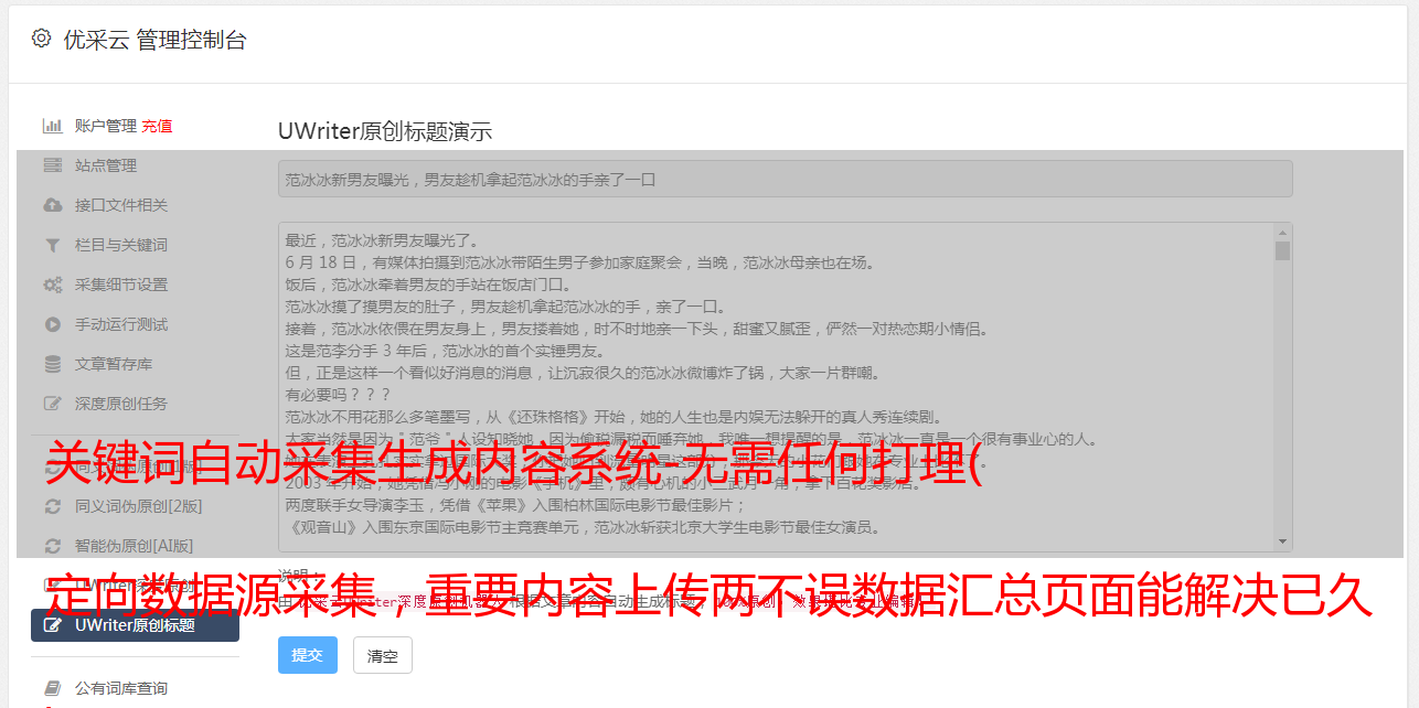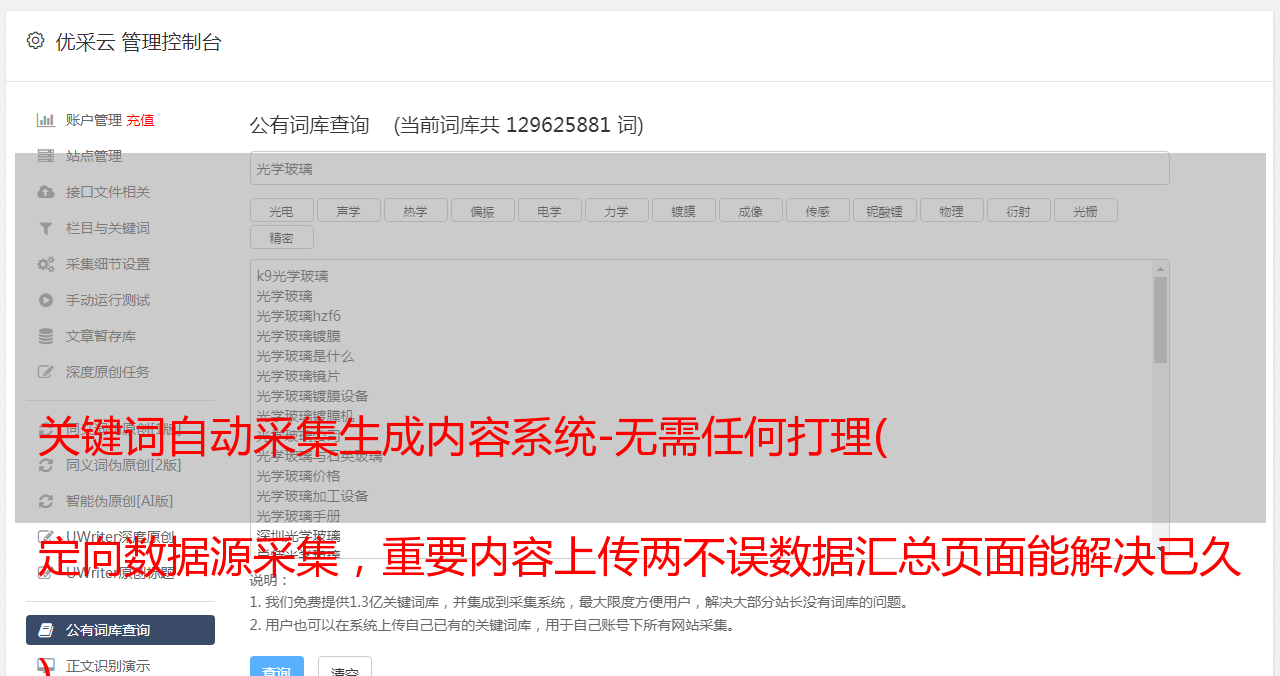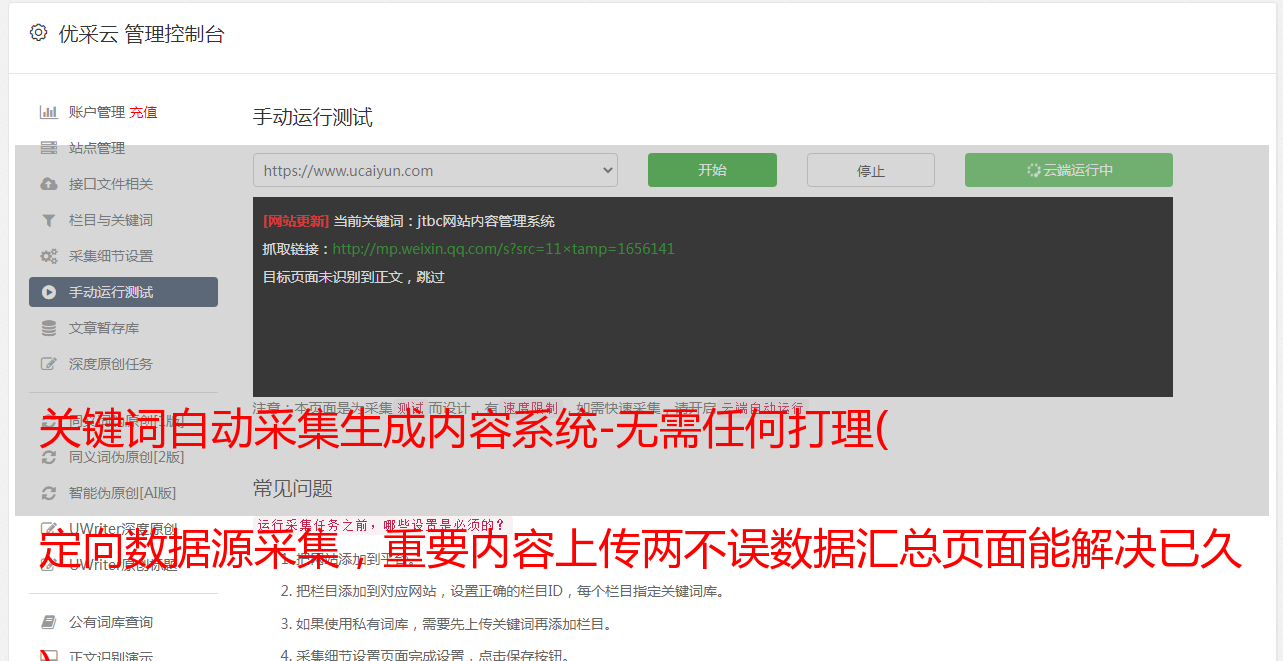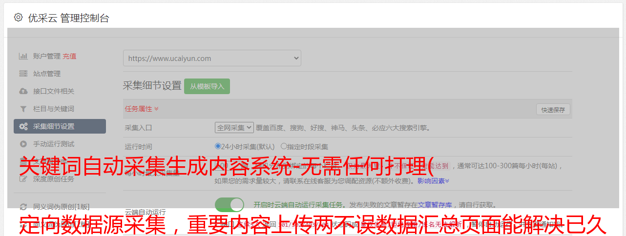 关键词自动采集生成内容系统-无需任何打理( 定向数据源采集,重要内容上传两不误数据汇总页面能解决已久 )